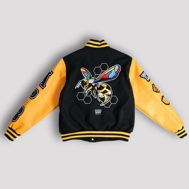 Step up your streetwear and gaming-inspired style with the Championship Bren Esports Varsity Black & Yellow Jacket. Designed for true fans and fashion-forward individuals, this varsity piece combines durability and comfort with its premium wool body and sleek leather sleeves. The soft viscose lining ensures a cozy fit, while the rib-knitted collar, cuffs, and hem give it a classic varsity finish. Featuring a snap-tab buttoned closure and spacious side pockets, this black and yellow jacket adds a bold edge to your everyday look. Perfect for esports enthusiasts or anyone looking to showcase sporty confidence with a trendy twist.