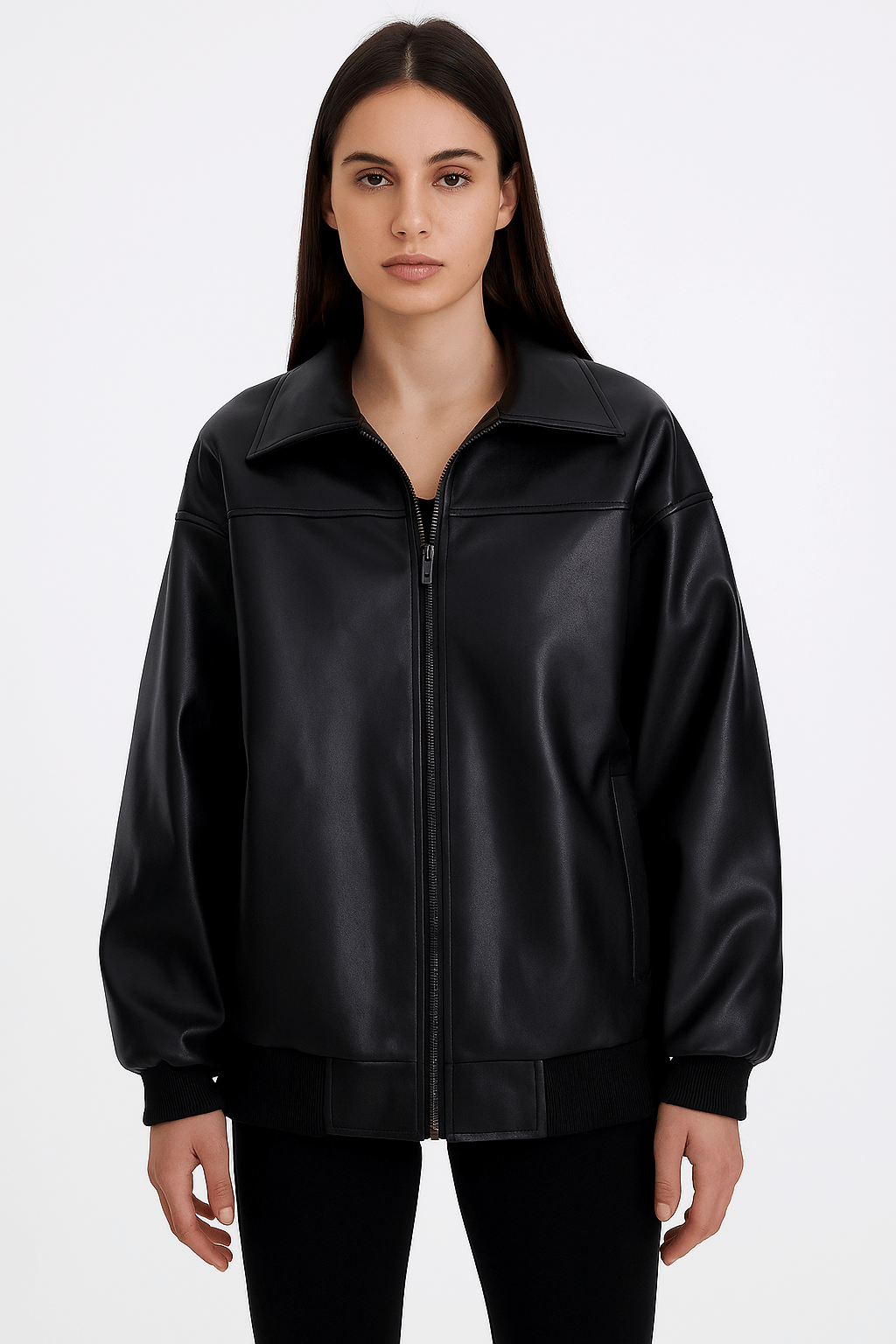 Featuring a front zipper, shirt-style collar, full-length sleeves with rib-knit cuffs, and superior tailoring, this jacket balances edgy sophistication with versatile practicality. Perfect for casual or refined looks, it’s a timeless leather staple for fans and fashion enthusiasts alike.