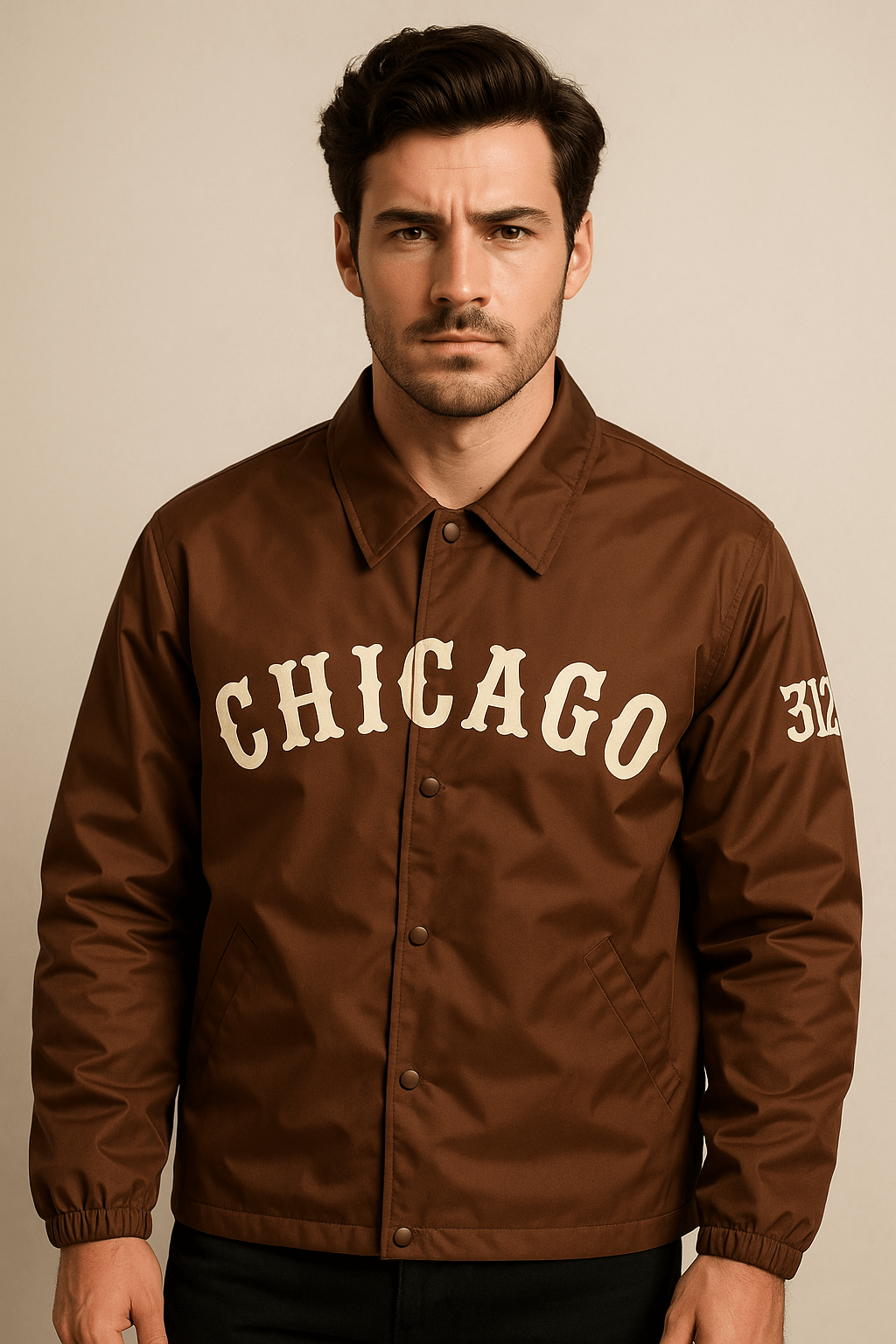 Featuring a shirt-style collar, full-length sleeves, elastic cuffs, and a convenient buttoned closure, it offers both style and practicality. Two side pockets add functionality, while the rich brown color embodies the timeless spirit of the Chicago Brown Bombers. Perfect for collectors, baseball fans, or anyone looking to elevate their casual wardrobe with iconic sportswear.