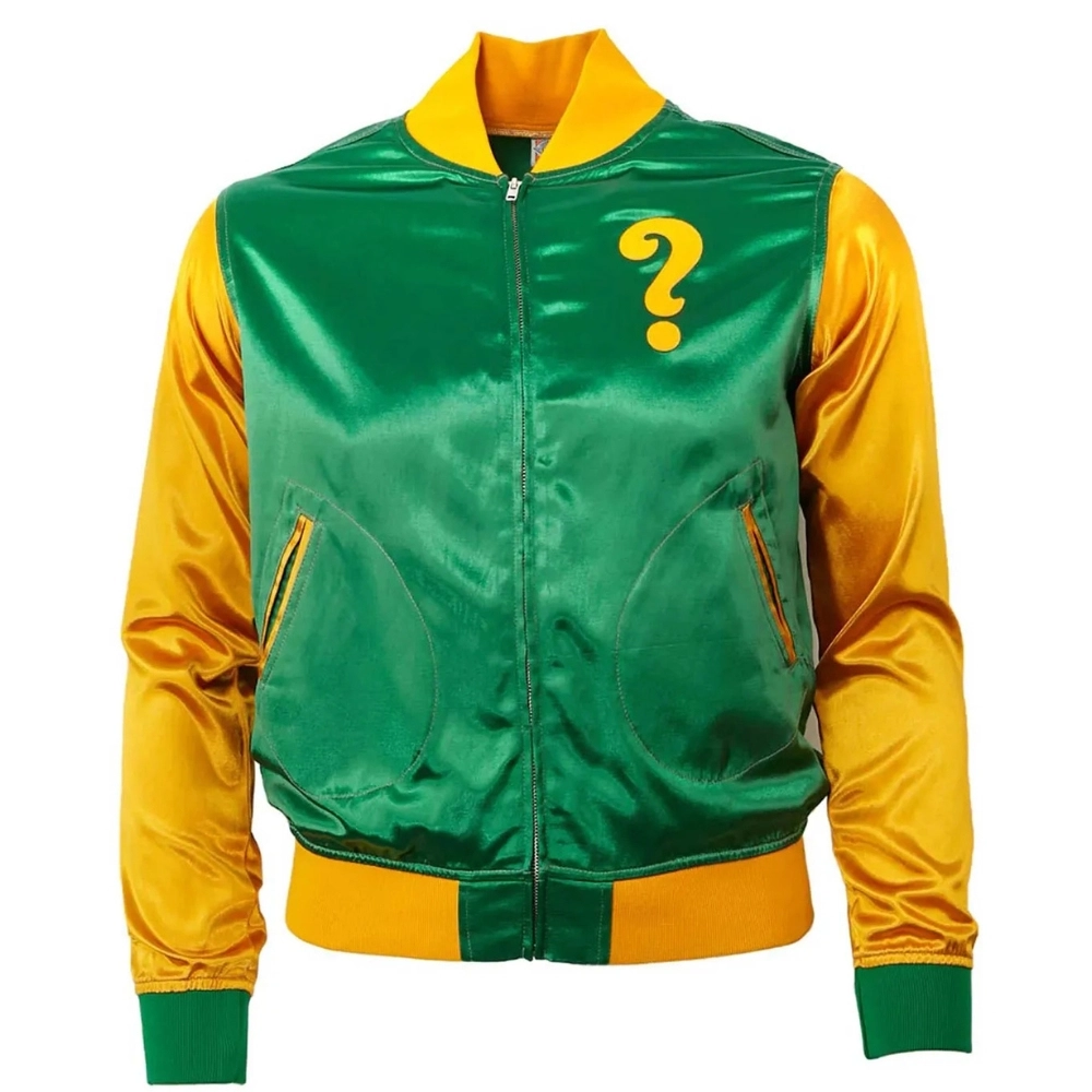 Inspired by vintage sportswear, the Clearing Question Marks Satin Color Block Varsity Jacket brings retro flair with a modern twist. The satin finish adds a smooth, elevated touch, while the bold graphics and color blocking guarantee attention wherever you go.