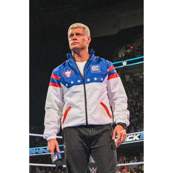 The Cody Rhodes SmackDown Jacket captures the fearless persona of one of WWE’s most electrifying superstars. With bold colors, intricate embroidery, and a powerful silhouette, this jacket stands out as a true tribute to Cody’s larger-than-life presence in the ring.
