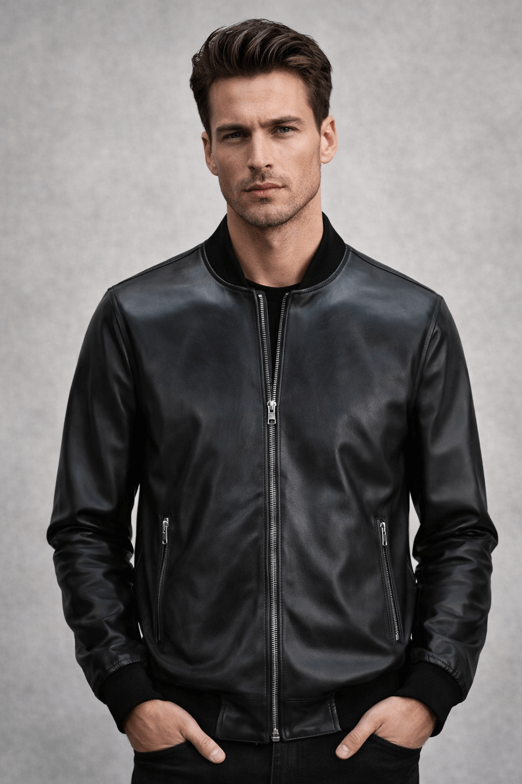 Inspired by the movie Kung Fury, this David Sandberg black leather jacket is worn by Kung Fury. Made from premium genuine leather with a soft viscose lining, it offers comfort and warmth. Featuring an erect collar, front YKK zipper closure, rib-knitted cuffs and hem, and front zipper waist pockets, this jacket is perfect for a bold, movie-inspired look.