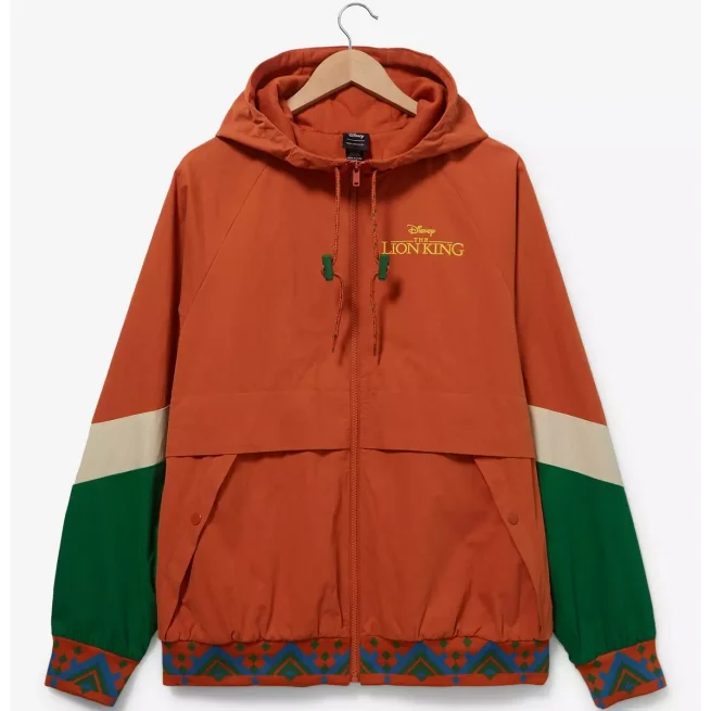 The bold orange color block design, paired with a hooded collar and rib-knitted cuffs, adds a playful touch inspired by the beloved duo. Complete with a smooth zip closure, two side pockets, and full-length sleeves, this windbreaker perfectly blends casual style with Disney magic. Ideal for layering, it’s a must-have for Lion King lovers of all ages.