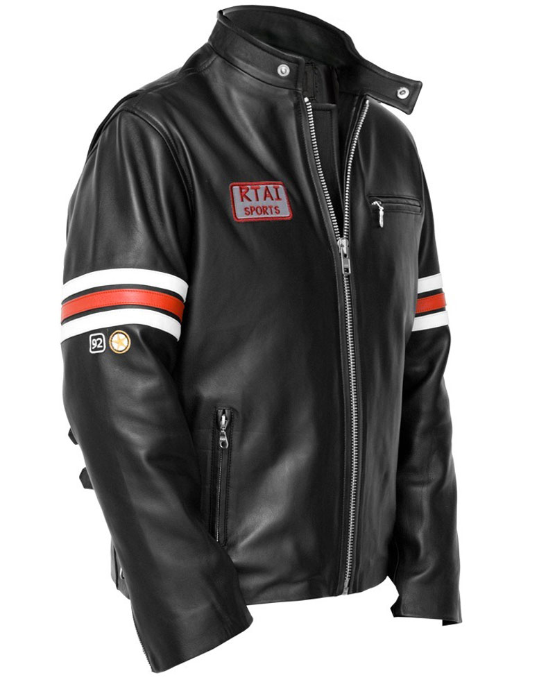 The Hugh Laurie Dr. Gregory House Motorcycle Black Leather Jacket is inspired by the iconic look from House M.D., combining rugged biker style with smart detailing. Made from premium genuine or faux leather, it features a snap-tab collar, YKK zipper closure, zippered cuffs, and stylish red-and-white arm stripes. Its soft viscose lining ensures all-day comfort, while multiple zipper pockets provide practical storage. Perfect for fans of Dr. House or anyone seeking a bold, modern biker jacket.