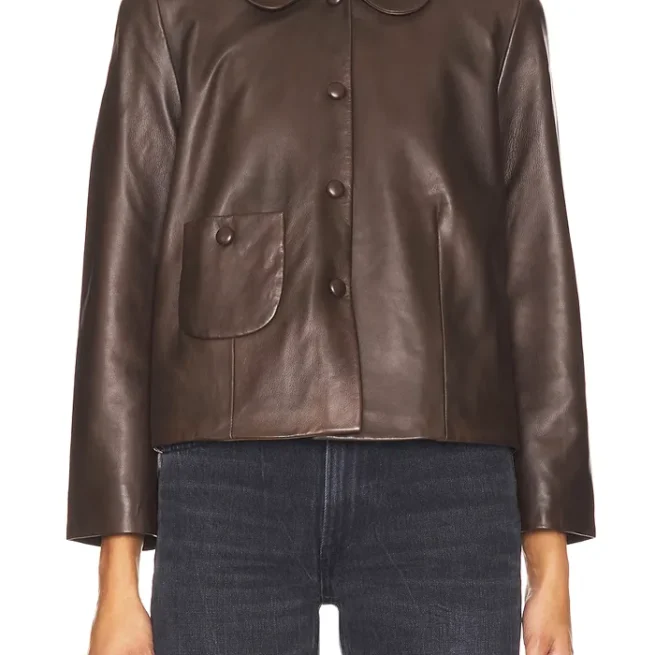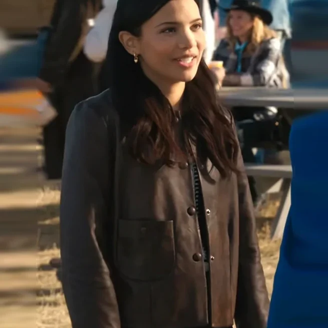 Inspired by Nikki Rodriguez in My Life with the Walter Boys (2025), this brown leather jacket is crafted from genuine leather with a soft viscose lining. Designed with a shirt-style collar, buttoned closure, full sleeves, and a front pocket, it’s a perfect mix of elegance and casual charm.