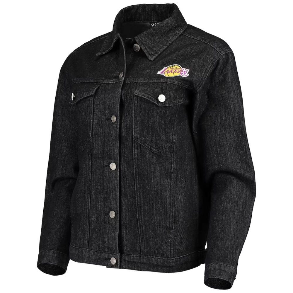Whether you’re courtside or out in the city, the Lakers Denim Los Angeles Black Jacket adds a sleek, sporty vibe to your outfit. Its black denim finish and detailed stitching celebrate your team pride with a modern twist that stands out.