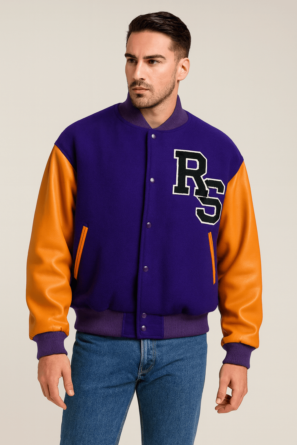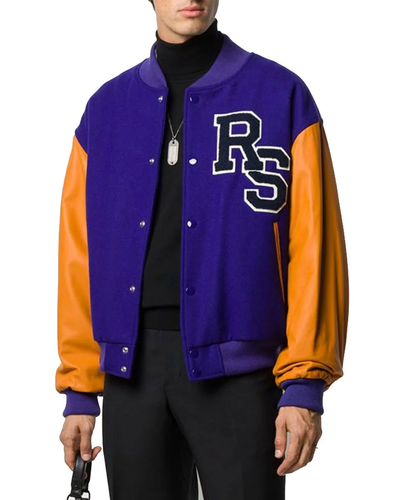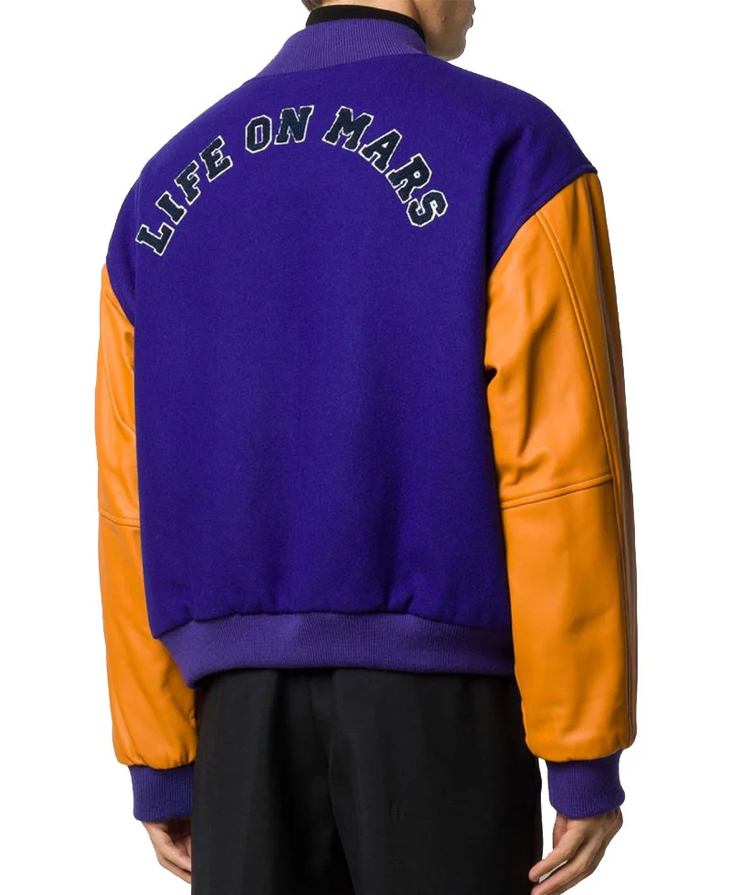 The Life on Mars RS Letterman Varsity Jacket is inspired by the British sci-fi TV series Life on Mars and designed with Raf Simons’ influence. Crafted from premium wool with genuine leather sleeves and a soft viscose lining, this jacket combines style and comfort. It features a button-front closure, rib-knitted collar, cuffs, and hem, and two front waist pockets for practicality. Perfect for fans of the series or anyone seeking a classic varsity look.