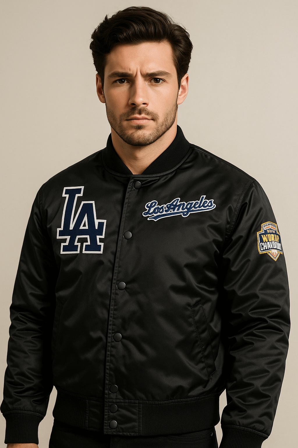 Show your team pride in style with the Men’s Los Angeles Dodgers Pro Standard Black Wordmark Satin Full-Snap Jacket. Crafted from 100% premium polyester satin with a soft viscose lining, this jacket offers a sleek, comfortable fit perfect for fans and collectors alike. Featuring a snap-tab button closure, rib-knitted collar and cuffs, and two side pockets, it blends sporty charm with everyday wearability. The bold Dodgers wordmark logo across the chest makes this black satin jacket a standout addition to any LA fan’s wardrobe.