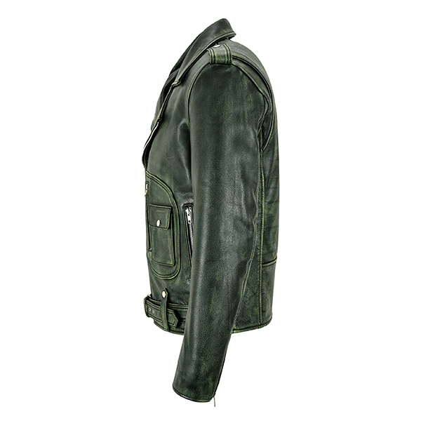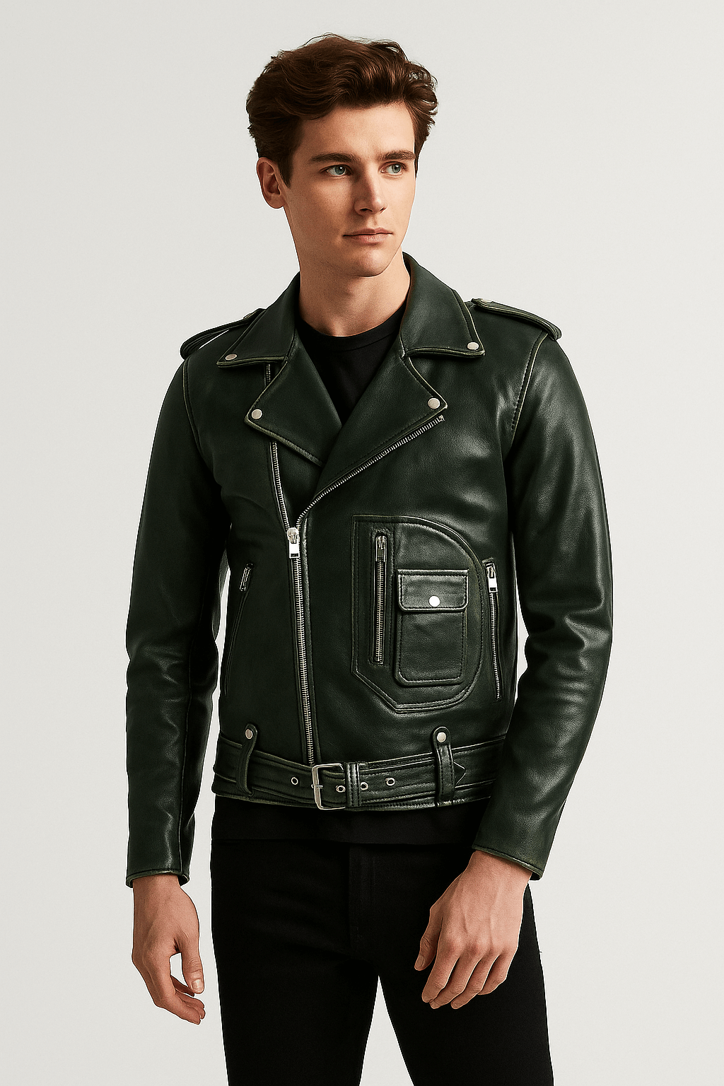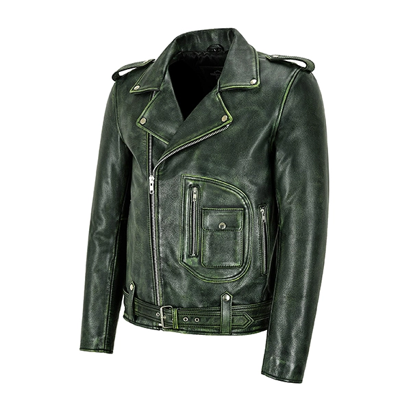 The Men’s Belted Waist Brando Motorcycle Jacket is a stylish and timeless piece for those who love a bold, refined look. Crafted from premium real or faux leather with a soft inner lining, it ensures both durability and comfort. Its green color, sleek zipper closure, and belted waist add a modern edge to the classic biker design. Zipped pockets and cuffs enhance its functionality and appeal. Perfectly stitched and customizable in size, it’s a versatile choice for any occasion.