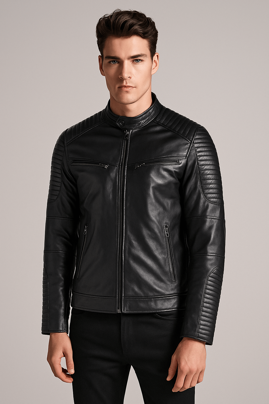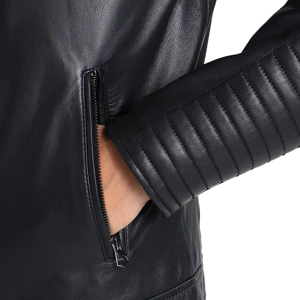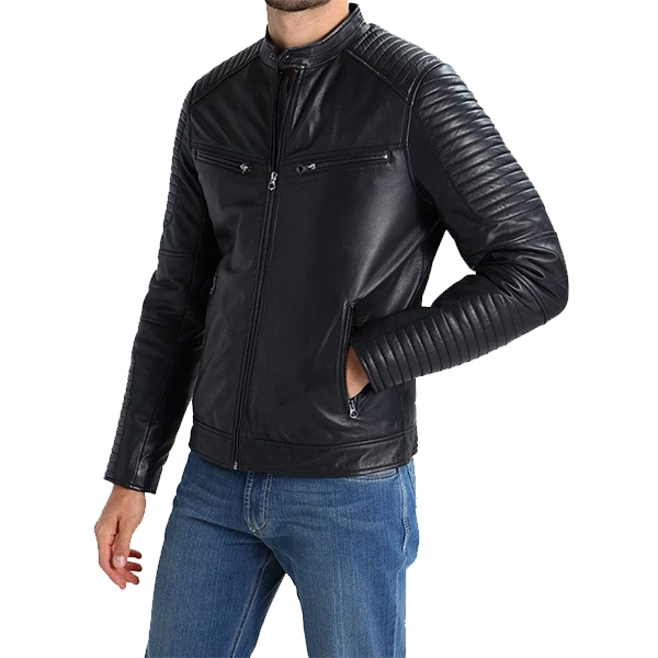 While the black color is a common pick for men’s attire, it also features the cult classic leather fabric that adds a glossy and silky texture on the front. Secondly, this Men Cafe Racer Brando Jacket features the zipper closure on the front along with the zipper closure on the cuffs. The pockets on the chest also include the zipper closure while the shoulder includes the quilted pattern, which has become a common trend in terms of design for every outerwear.