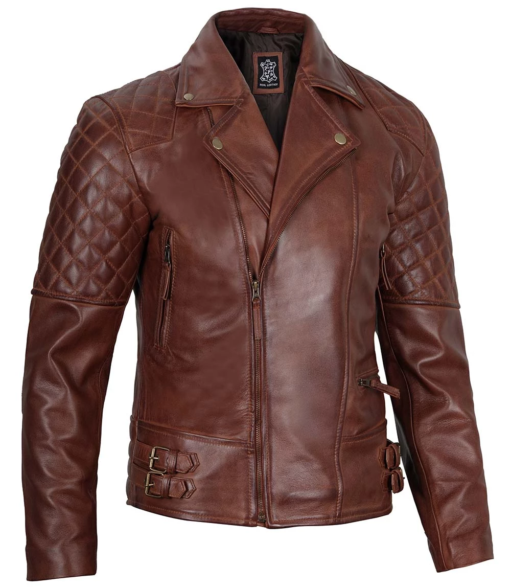 Motorcycle Men’s Dark Brown Asymmetrical Quilted Leather Jacket