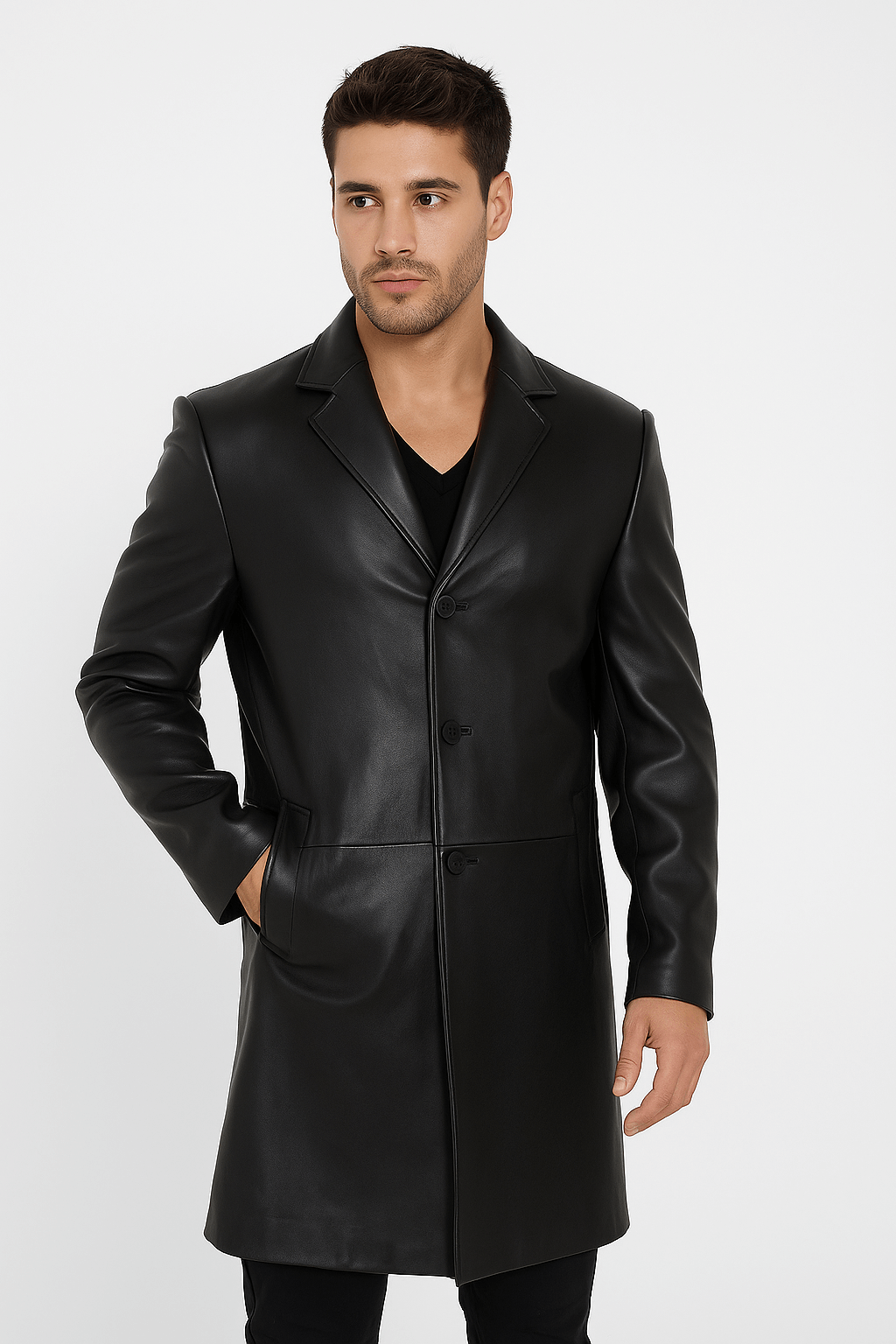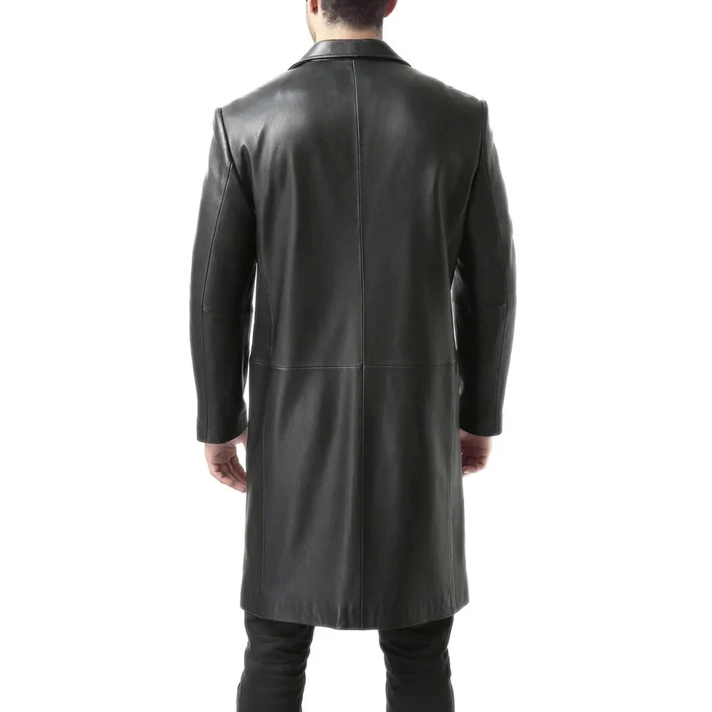Crafted from 100% soft lambskin leather with a smooth viscose inner lining, this long trench-style coat offers comfort and durability. It features a classic notch lapel, front button closure, and full-length design for a sleek silhouette. With two side pockets and one inner pocket, the Men’s Full Length Trench Coat is a blend of practicality and elegance for men who appreciate statement outerwear.
