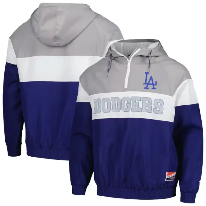 Men’s Los Angeles Dodgers New Era Royal Ripstop Raglan Quarter-Zip Hoodie Windbreaker Jacket