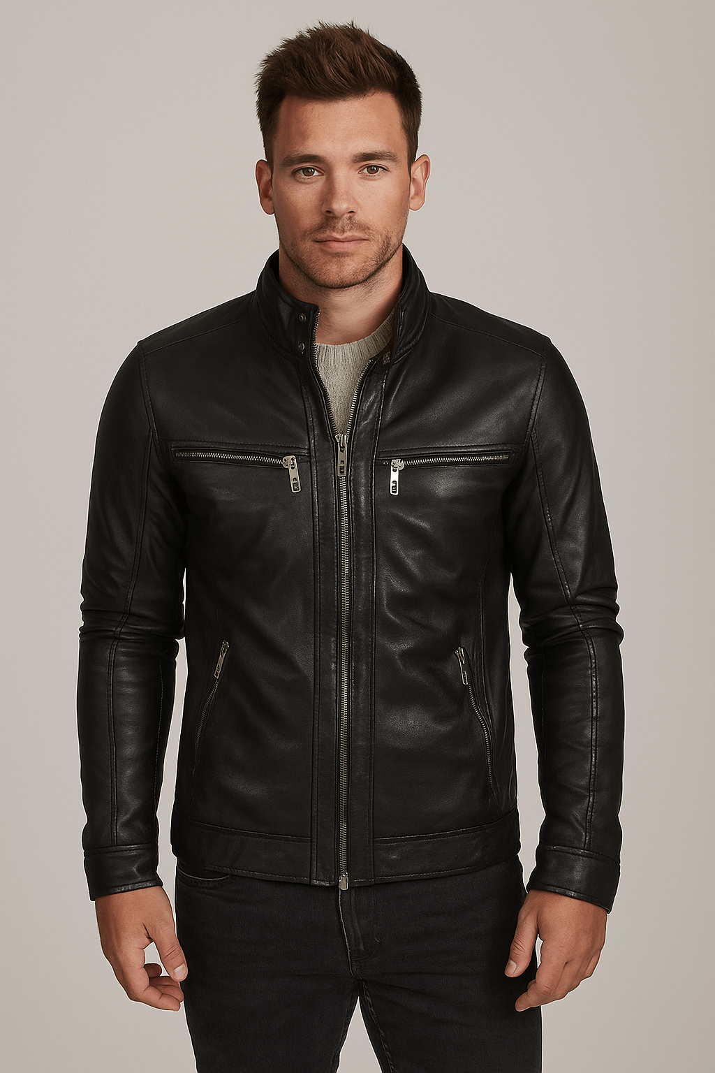 Men’s Street Classy Vintage Motorcycle Leather Jacket