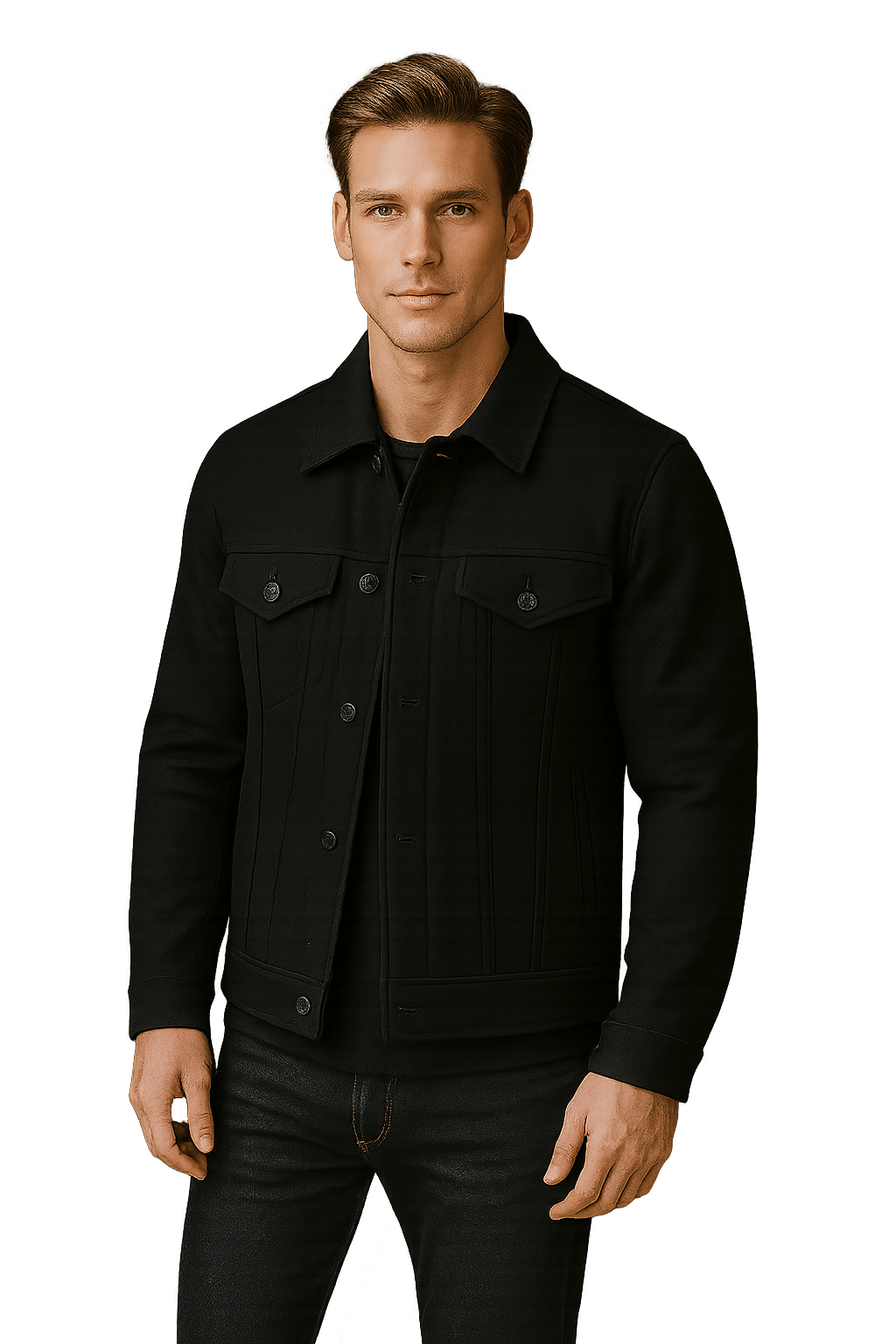 Featuring a button-front closure, shirt-style collar, full-length sleeves, and structured silhouette, this jacket works perfectly for both office and casual looks. Versatile, durable, and stylish, it’s an essential investment piece for men who appreciate understated luxury and refined outerwear.