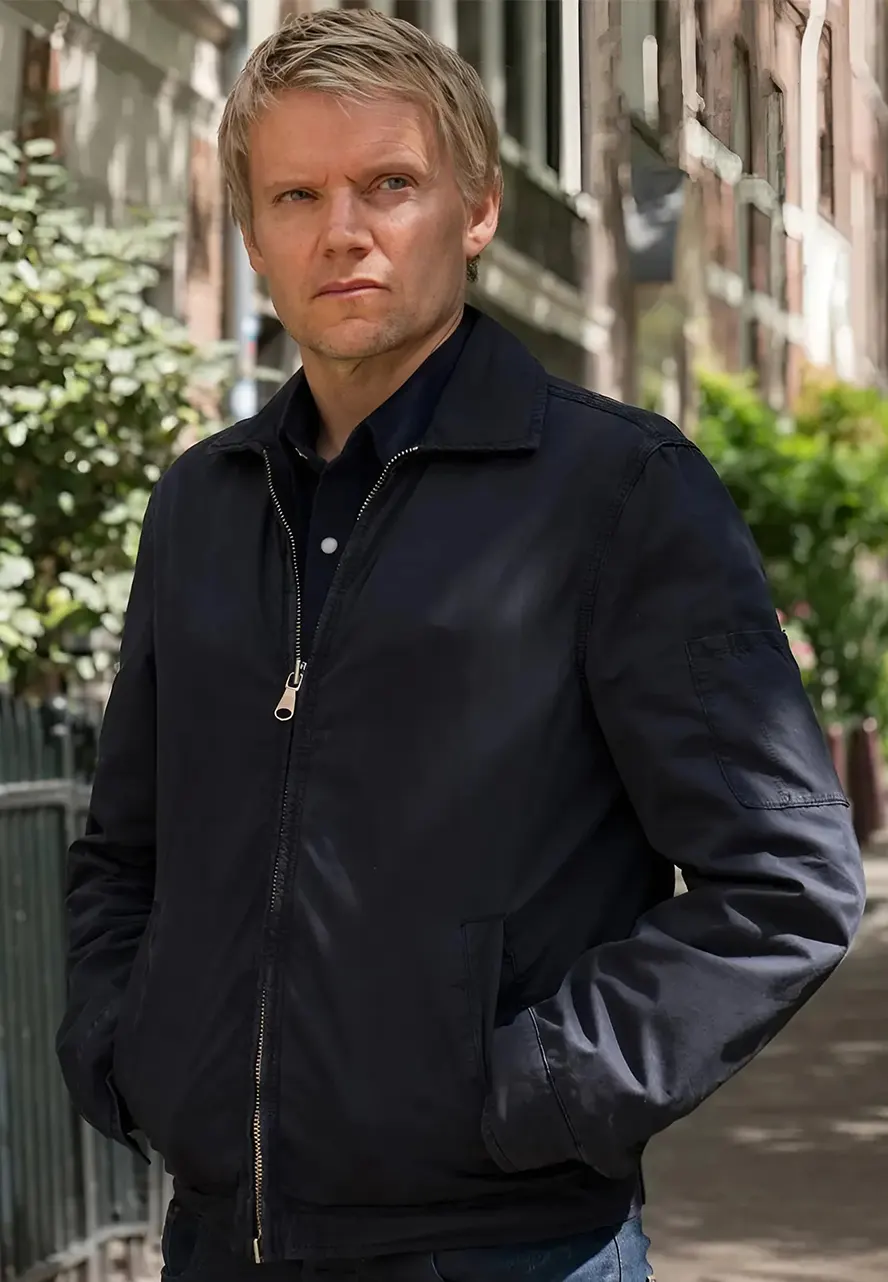 The Marc Warren S03 Piet Van Der Valk Cotton Jacket is inspired by the British crime TV series Van Der Valk, worn by Marc Warren as Piet Van Der Valk. Crafted from premium cotton fabric with a soft viscose lining, this blue jacket offers comfort, warmth, and everyday style. It features a shirt-style collar, YKK front zipper closure, full-length sleeves with open-hem cuffs, and two front waist pockets for practicality.