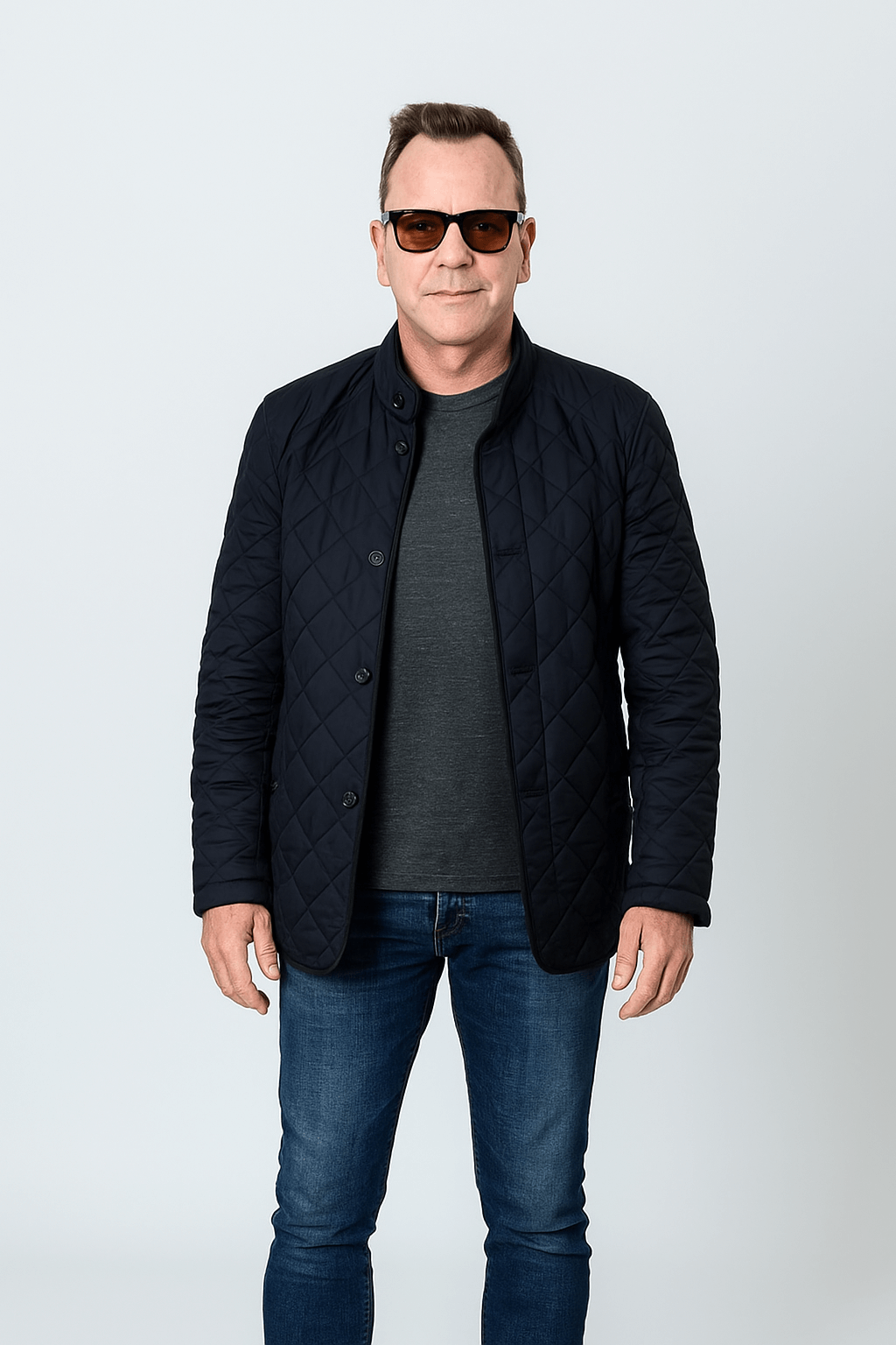Make Your Own Iconic Looks As No One Can Leave Without Admiring You Just Need to Shop and Wear the Rabbit Hole Kiefer Sutherland Quilted Jacket That Will Also Enhance the Attraction of Your Personality. Its Premium Quality Polyester Fabrication Makes It Warm and Ageless and Its Soft Viscose Inner Will Comfy You as Long as You Wear It. The Strong Black Color Can Be Worn Over Any Outfit. The Kiefer Sutherland Quilted Jacket Has Been Tailored by Using Attributes Like Stand-up Collar, Snap Tab Buttoned Closure, and Side Waist Pockets and Its Quilted Feature Makes It Worth Wearing. The Black Quilted Jacket Will Give You a Classy and Graceful Look.