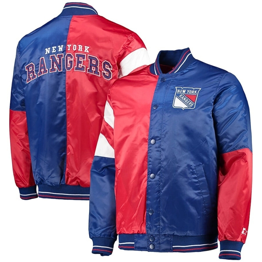 Starter Blue and Red New York Rangers The Leader Satin Varsity Jacket
