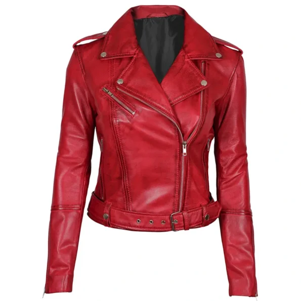 Womens Red Leather Biker Style Jacket
