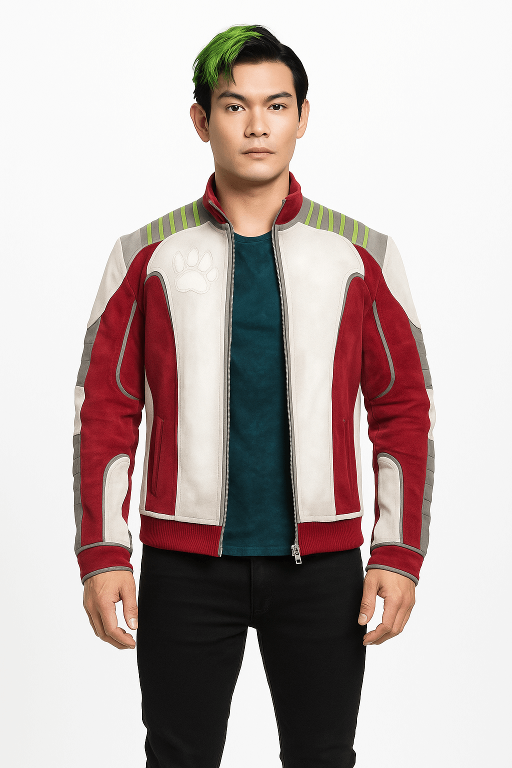 The Ryan Potter Titans Season 03 Gar Logan Jacket Has a Fine and Polished Texture With Stylish Looks, It Will Enhance Your Attractive Personality and Derive Everyone to Follow Your Style. Its Premium Quality Real Leather Makes It Warm and Luxuriant Furthermore Its Soft Viscose Inner Makes It Sweat-free and Comfortable. The combination of White and Red Colors Makes It Dynamic. The Titans Gar Logan Leather Jacket Has Been Styled With Truly Impressive Attributes Like a Stand-up Collar, Smooth Zippered Closure, and Padding Shoulder and Sleeves Giving You a Heroic Look. The Ryan Potter Leather Jacket Has an Impeccable Style That Gives You Bold and Sturdy Looks.