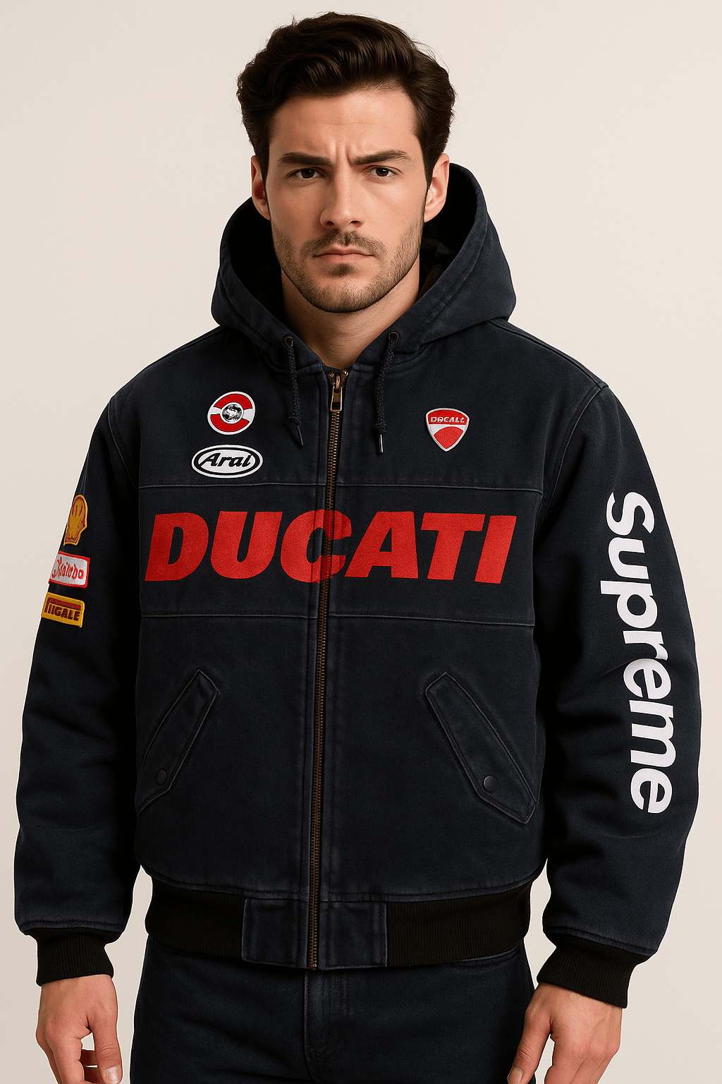 Supreme x Ducati Hooded Racing Black Denim Jacket