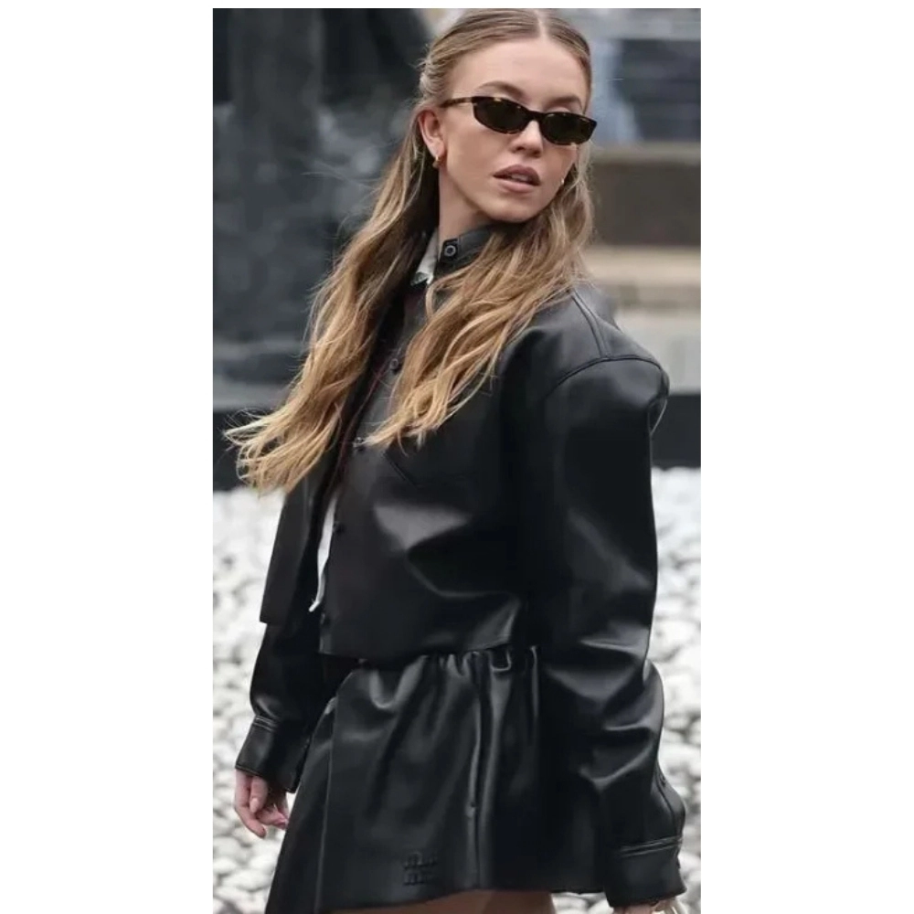 Taking cues from the iconic Sydney Sweeney Miu Miu PFW 2025 Black Leather Jacket, this piece channels designer confidence and timeless attitude. Whether paired with casual denim or a dressy ensemble, it delivers show-stopping presence with every step.