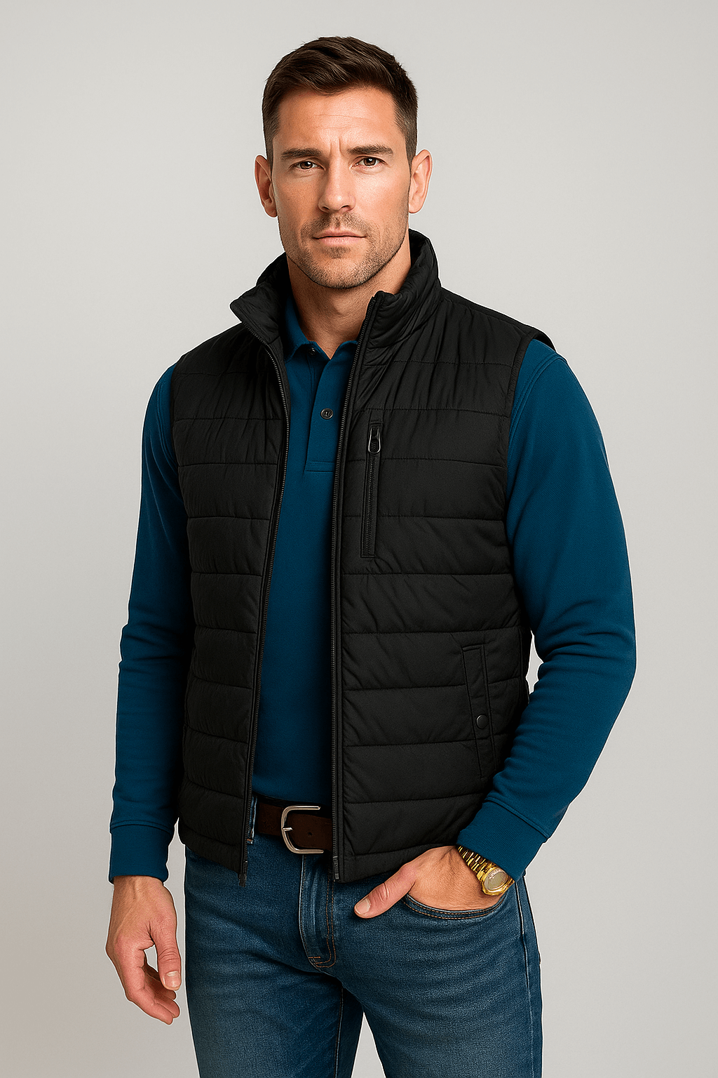 Designed with a stand-up collar, front zipper closure, and a tailored fit, this vest delivers modern functionality with timeless appeal. Perfect for layering over shirts or tees, it’s an essential wardrobe staple that combines durability, comfort, and effortless style.