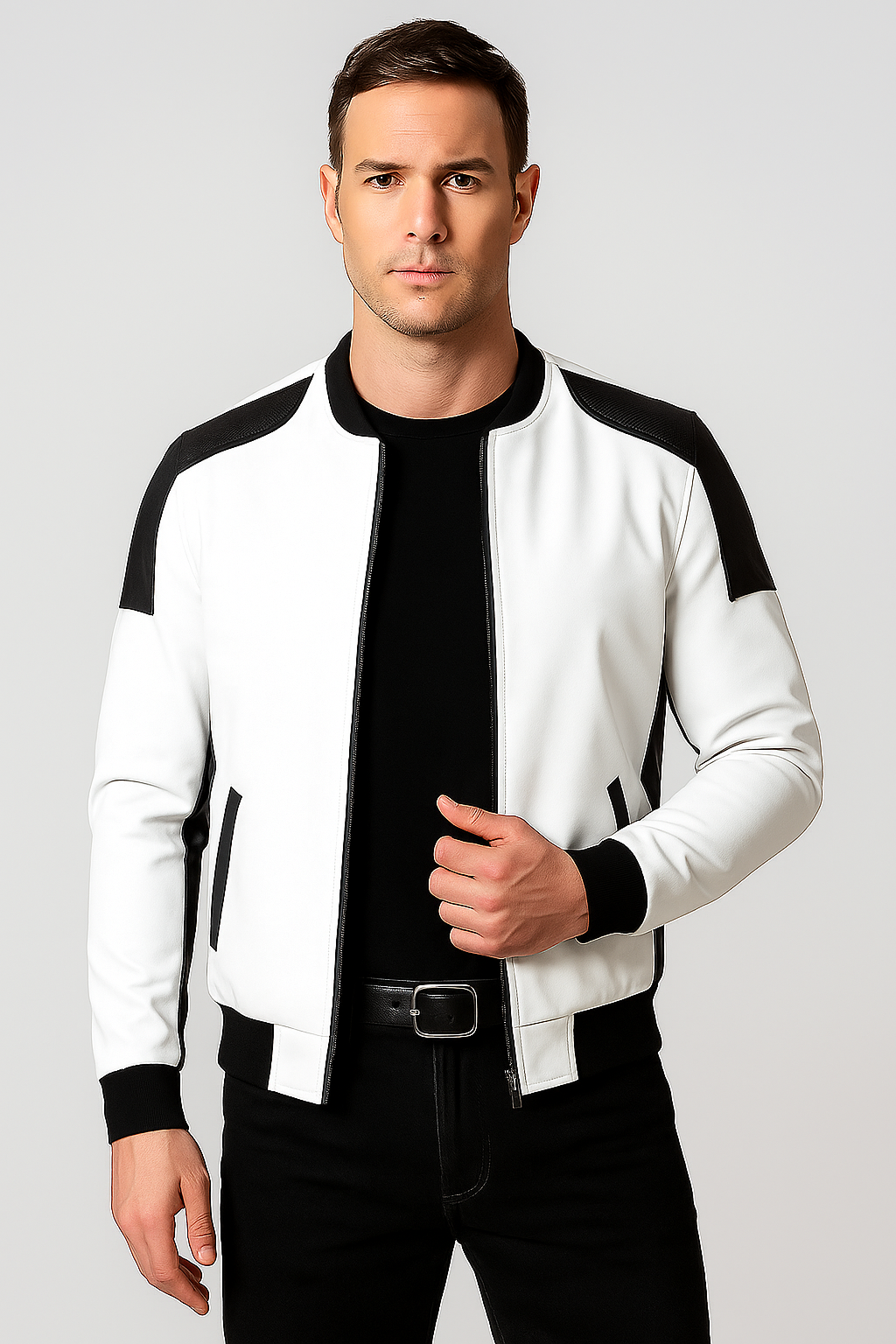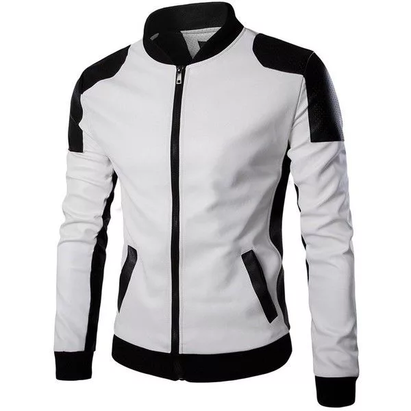 Men’s Slim-Fit Faux Leather Bomber Black And White Jacket